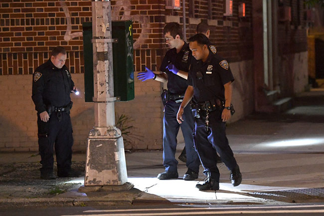 Cops investigate the area where a police officer was struck and dragged by a car. Paul Martinka